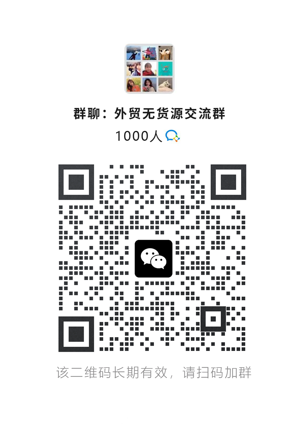 本群为外贸无货源交流群,群内有货源厂家、货源供应商、无货源跨境店铺主。每天免费发布相关货源,免费加入,群内禁止广告及其他非相关业务话题。非相关业务人群可在底部找到适合的行业微信群。